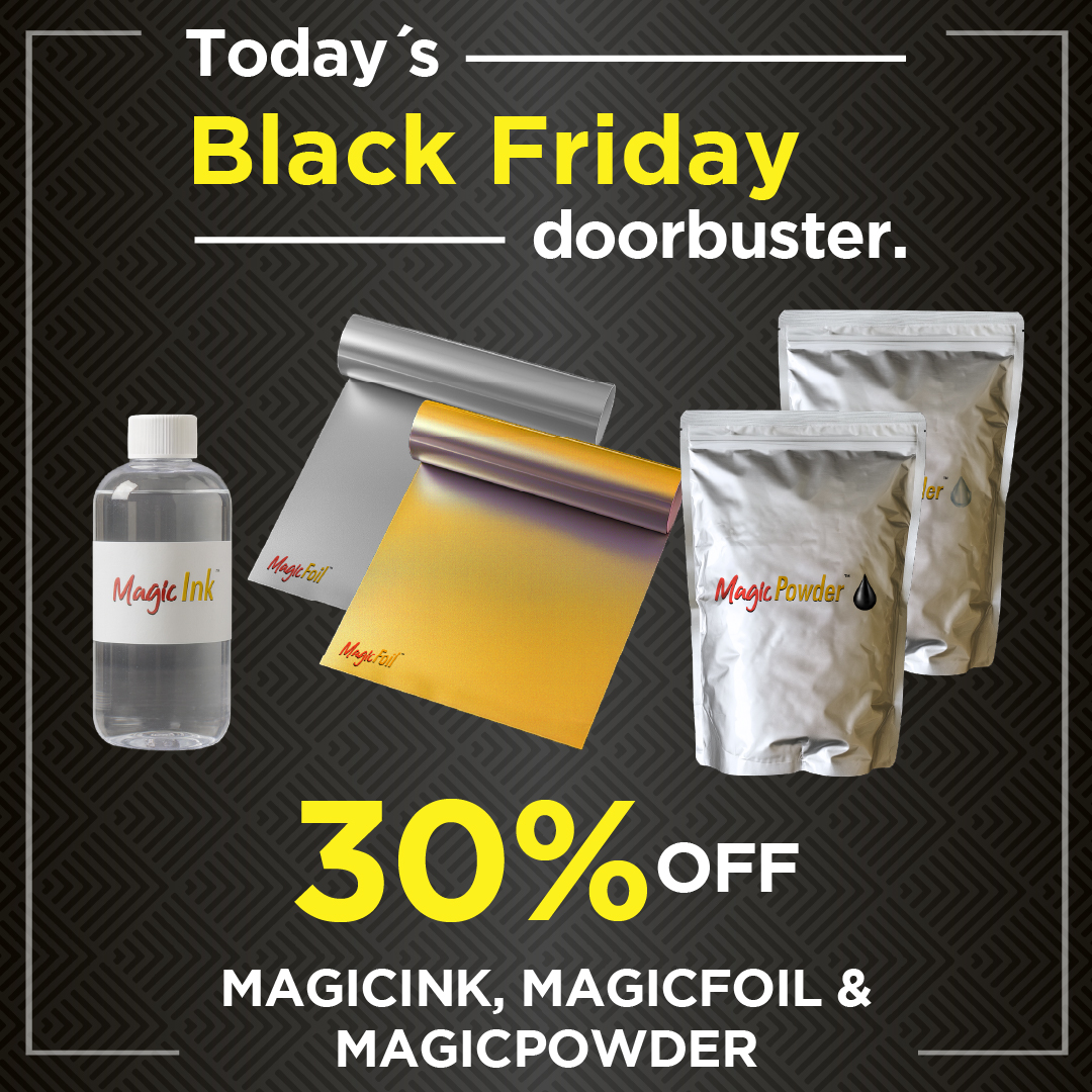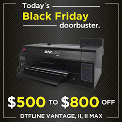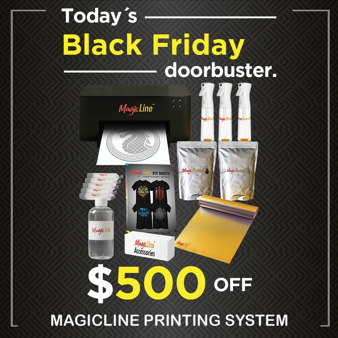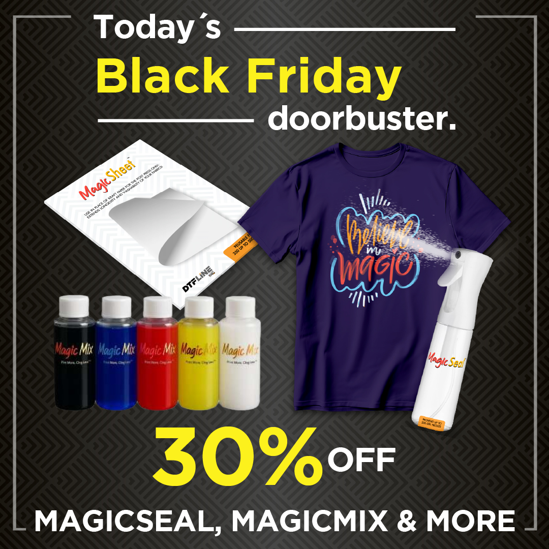 Up to 30% OFF applies to all DTGPRO | DTFLINE | MAGICLINE branded consumables (ink, film, powder, cleaning solutions, magicseal, magicmix, etc).