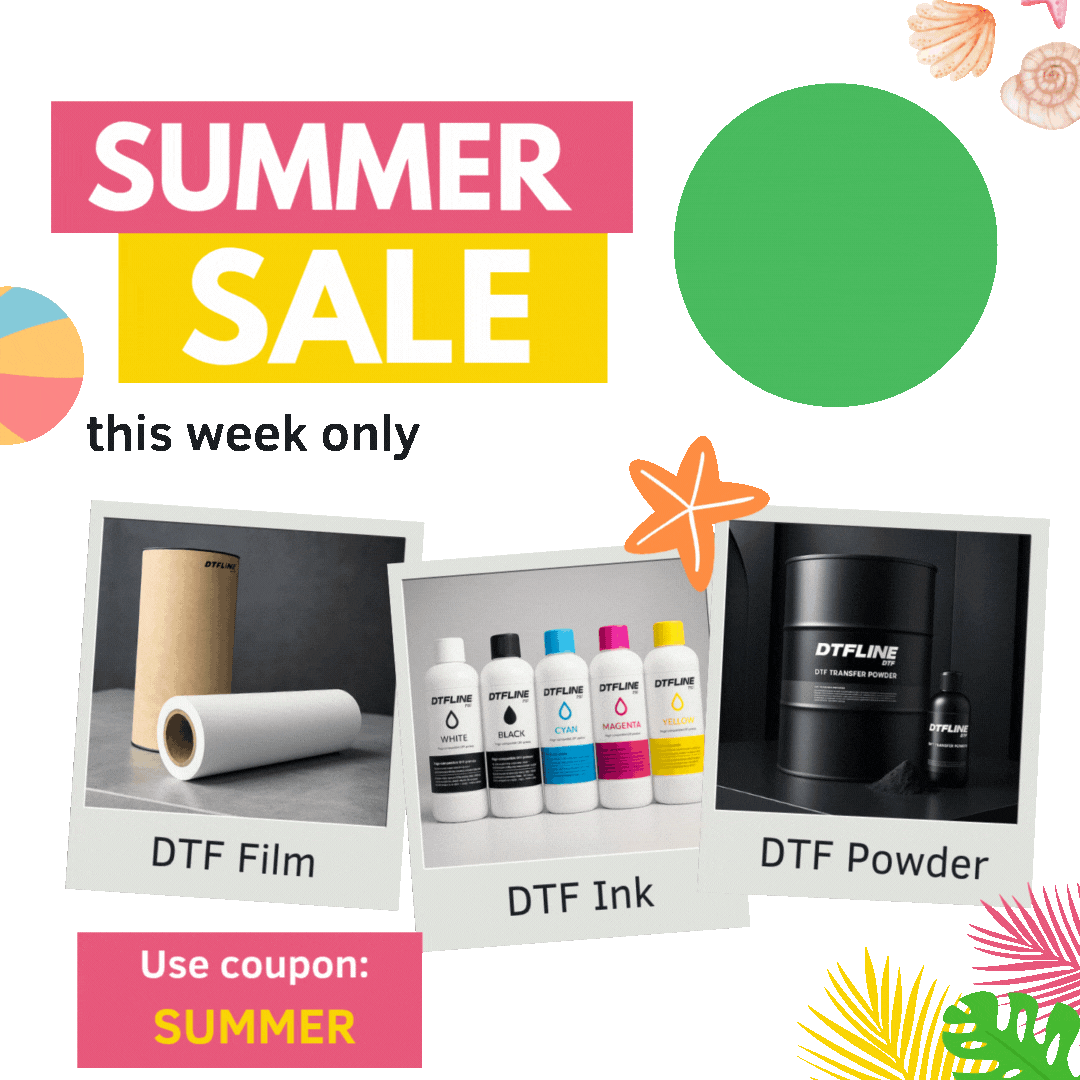 Discounts apply to ALL DTFLINE consumables including ink, film & powder, cleaning solutions, Magic Line products, and more, as well as custom printed transfers.